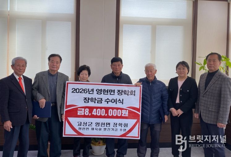 브릿지저널 김경미 기자 | 고성군은 영현면 장학회가 3월 6일 지역인재 육성을 위하여 총 8,400천 원의 장학금 및 발전기금을 전달했다고 밝혔다.