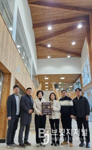 국산 낙엽송 목재를 건축 재료로 활용해서 일부 공간이 목조건축물로 건립됨에 따라 올해 탄소저장량 공식 인증을 받았다.