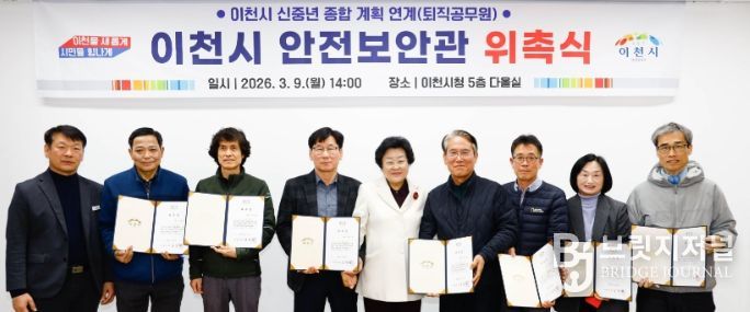 브릿지저널 김경미 기자 | 이천시는 지난 9일 ‘이천시 안전보안관 위촉식’을 열고 신규 안전보안관 7명에게 위촉장을 수여했다.