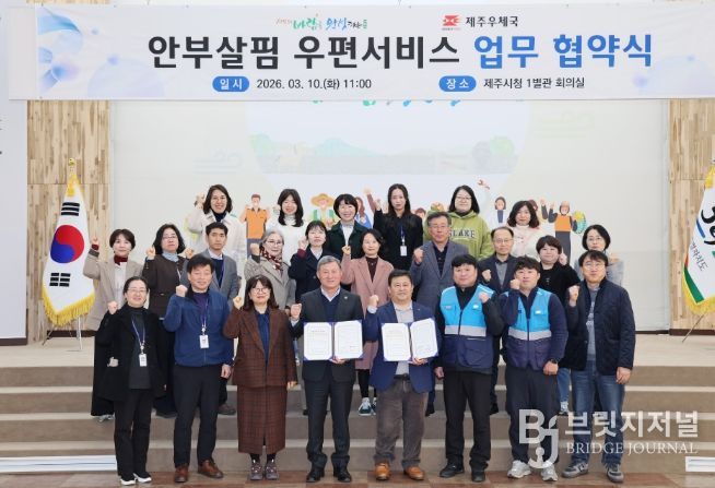 브릿지저널 정보영 기자 | 제주시는 3월 10일 시청 1별관 회의실에서 제주우체국(국장 오달규)과 ‘안부살핌 우편서비스’ 업무 협약을 체결했다.