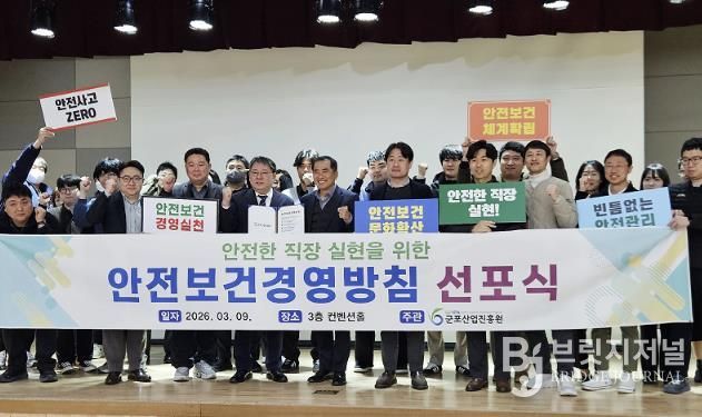 브릿지저널 김경미 기자 | 군포산업진흥원은 지난 9일 청사 3층 컨벤션홀에서 기관 임직원이 참석한 가운데 '2026년 안전보건경영 선포식'을 개최했다.