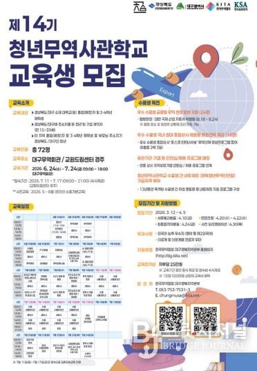 브릿지저널 정보영 기자 | 경상북도는 한국표준협회 및 한국무역협회와 함께 실무형 청년 무역인재 양성을 위한 제14기 청년 무역사관학교 교육생을 모집한다.
