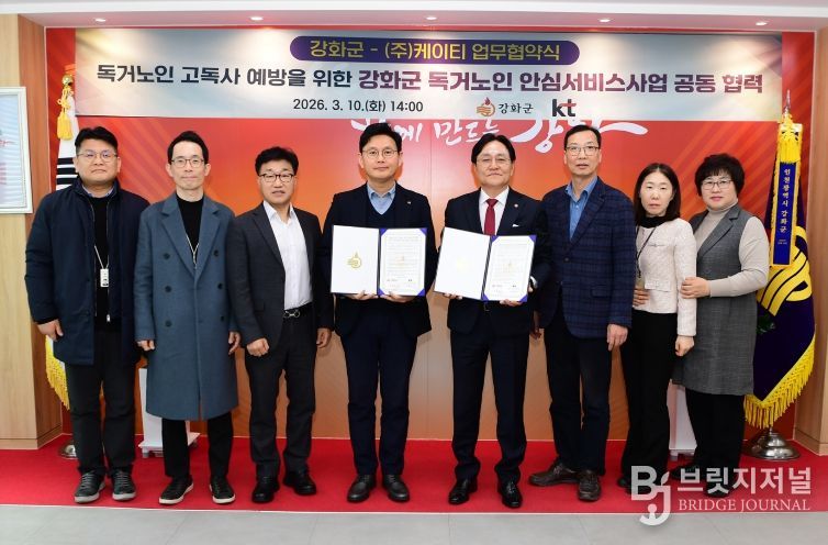 브릿지저널 김경미 기자 | 강화군은 지난 10일 KT와 독거노인 안심서비스 사업 추진을 위한 업무협약을 체결했다.