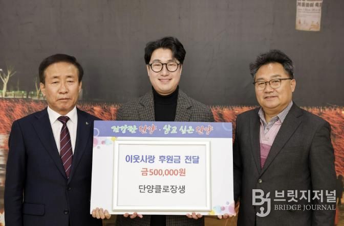 브릿지저널 김경미 기자 | 단양군은 대강면에 소재한 농업회사법인 단양클로장생(대표 김도현)이 지역 내 어려운 이웃을 돕기 위한 성금 50만 원을 기탁했다고 11일 밝혔다.
