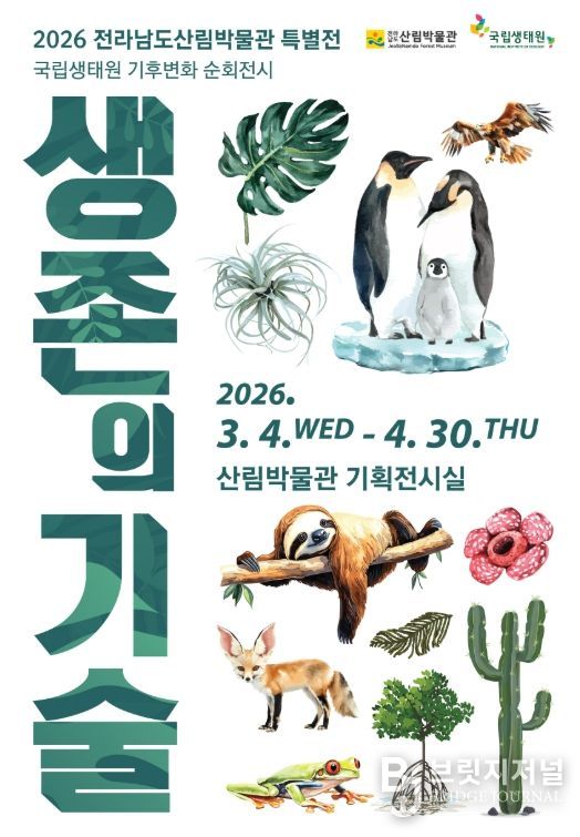 브릿지저널 김경미 기자 | 전라남도 완도수목원은 4월 30일까지 산림박물관 기획전시실에서 기후변화 특별전 ‘생존의 기술’을 개최한다.