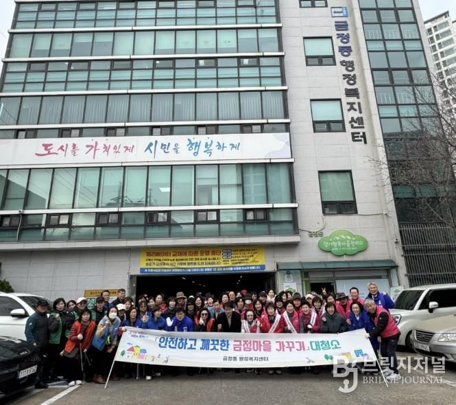 브릿지저널 김경미 기자 | 군포시 금정동에서는 지난 3월 11일 6개 직능단체 및 주민 등 80여명이 함께 참여한 가운데 “깨끗한 금정마을 가꾸기” 대청소 행사를 진행했다.