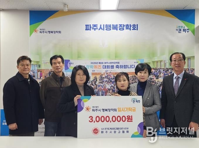파주시광고협회는 지역사회의 일원으로서 미래 인재 육성에 보탬이 되고자 이번 기탁을 마련했으며, 전달된 기탁금 300만 원은 파주시 관내 학생들을 위한 장학사업에 사용될 예정이다.