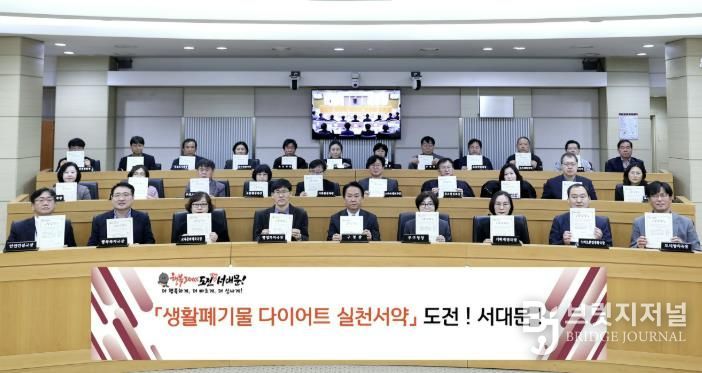 브릿지저널 김경미 기자 | 서대문구가 이달 12일 구청 대회의실에서 간부 직원들이 참여한 가운데 ‘생활폐기물 다이어트 실천 서약 챌린지’를 진행했다.