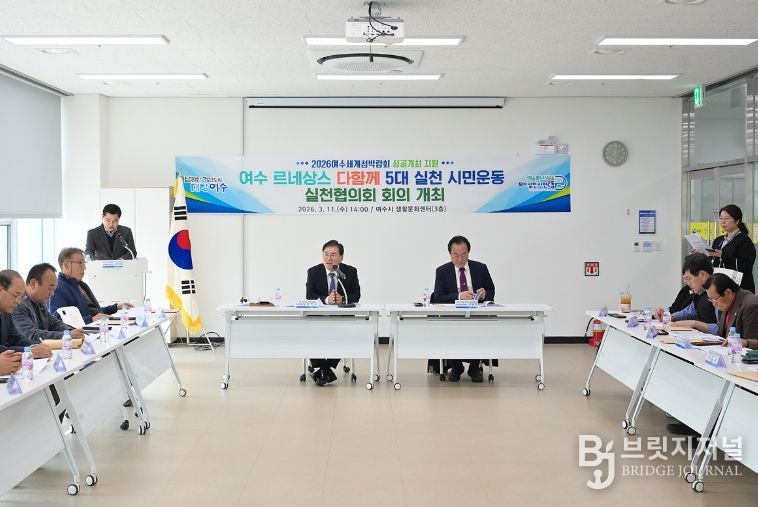 브릿지저널 김경미 기자 | 여수시는 지난 11일 생활문화센터에서 ‘여수 르네상스 다함께 5대 실천 시민운동’ 실천협의회 2026년 첫 정기회의를 개최하고 2026여수세계섬박람회 성공개최를 위한 시민 참여 확대 방안을 논의했다고 밝혔다.