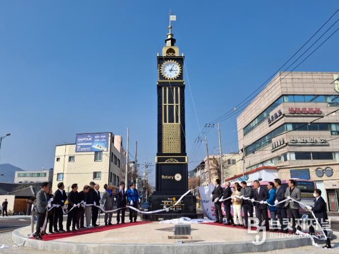 브릿지저널 김경미 기자 | 광양로타리클럽은 지난 3월 10일 광양읍 목성중앙로사거리 회전교차로(구 시계탑사거리)에서 창립 50주년을 기념하는 시계탑 제막식을 개최했다.