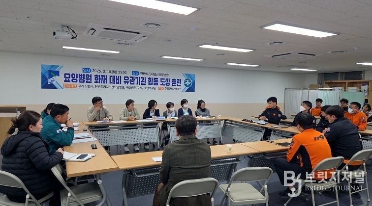 브릿지저널 김경미 기자 | 전남 구례군은 지난 10일, 단반트리지리산요양병원 회의실에서 화재 발생 시 신속한 대응과 입소자 안전 확보를 위한 ‘2026년 요양병원 화재 대비 유관기관 합동 도상훈련’을 실시했다고 밝혔다.