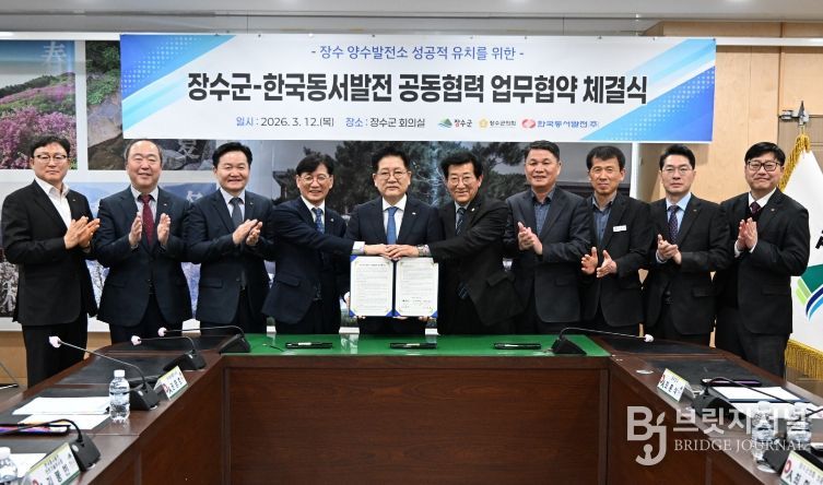 브릿지저널 정보영 기자 | 장수군은 12일 군청 회의실에서 장수군의회, 한국동서발전(주)과 장수군 양수 발전 사업 성공적 유치를 위한 공동협력 업무협약을 체결했다.