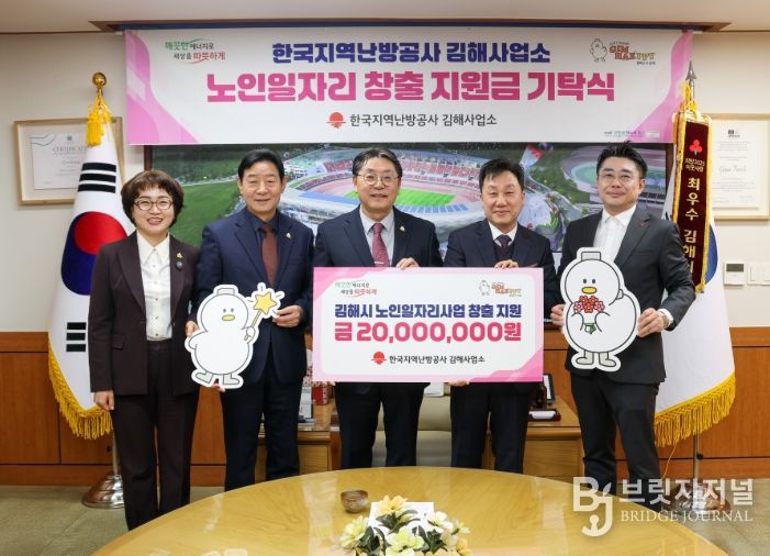 브릿지저널 김경미 기자 | 한국지역난방공사는 12일 김해시를 방문해 노인일자리 창출을 위한 지원금 2천만원을 기탁했다.
