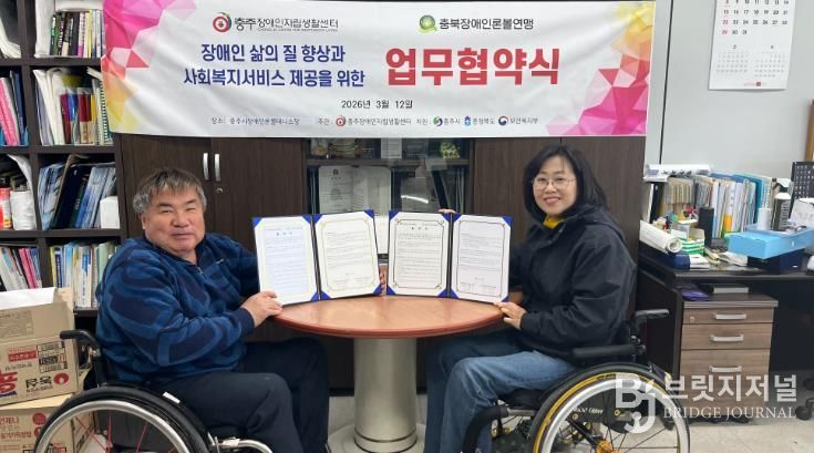 브릿지저널 김경미 기자 | 충주장애인자립생활센터와 충북장애인론볼연맹은 지난 12일 장애인의 자립생활 지원 강화와 생활체육을 통한 지역사회 참여 확대를 위해 상호 협력하는 업무협약(MOU)를 체결했다.