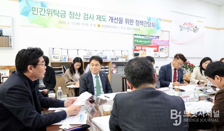 브릿지저널 정보영 기자 | 대전광역시의회 행정자치위원회는 12일 정명국 의원(국민의힘, 동구3)을 좌장으로 대전지방세무사회 소속 세무사들과의 정책간담회를 개최하고 민간위탁사업 결산 검증 제도 개선 방안을 논의했다.