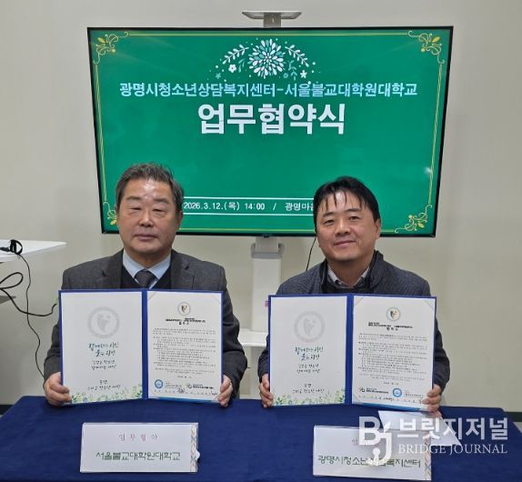 브릿지저널 김경미 기자 | 광명시청소년재단 광명시청소년상담복지센터와 서울불교대학원대학교는 광명마음숲상담소에서 3월 12일 지역청소년의 심리·정서 지원 강화를 위한 업무협약(MOU)을 체결했다.