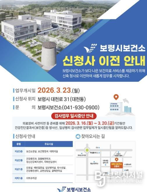 브릿지저널 정보영 기자 | 보령시보건소가 원도심 복합업무타운 내 신청사로 이전해 시민 중심 공공보건서비스 제공을 위한 새로운 출발에 나선다.