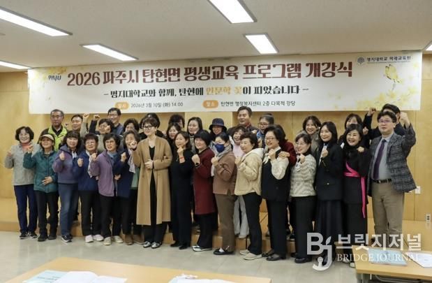 브릿지저널 김경미 기자 | 파주시 탄현면과 명지대학교가 함께 추진하는 ‘일생일대 평생학습 프로그램’개강식이 주민들의 큰 관심 속에 개최됐다.