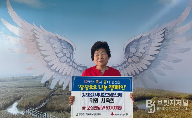 서옥희 위원은 현재 강진읍새마을부녀회장이며 2020년부터 올해까지 매년 50만원씩 삼삼오오 착한기부 나눔 활동에 참여하고 있다.