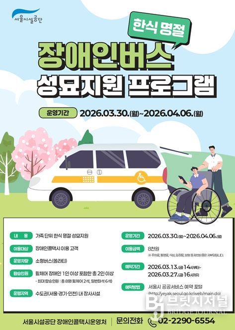 브릿지저널 김경미 기자 | 서울시설공단은 한식(4월 6일)을 맞아 장애인 가족의 성묘 이동 편의를 돕기 위해 ‘나들이 동행버스’를 활용한 성묘지원 버스를 운영한다.