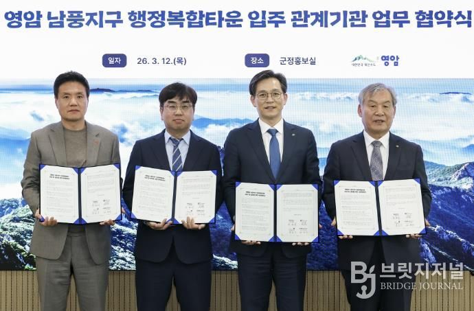 12일 영암군은 군청에서 서부지방산림청 영암국유림관리소, 국민건강보험공단 영암지사, NS종합건설과 ‘남풍지구 행정복합타운 입주 업무협약’을 체결했다.