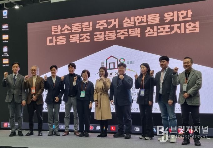 브릿지저널 김경미 기자 | 산림청 국립산림과학원은 12일, ‘2026대한민국목조건축박람회’에서 ‘탄소중립 주거 실현을 위한 다층 목조 공동주택 심포지엄’을 개최하고 기후 위기 대응을 위한 국산 목재의 가치와 기술적 해법을 제시했다고 밝혔다.