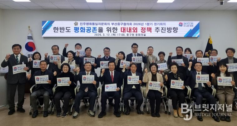 브릿지저널 윤나영 기자 | 민주평화통일자문회의 부산중구협의회(협의회장 김현진)는 3월 12일 오후 5시 중구청 중회의실에서 중구청장, 자문위원 등 30여 명이 참석한 가운데‘한반도 평화공존을 위한 대내외 정책 추진방향’을 주제로‘2026년 1분기 정기회의’를 개최했다.