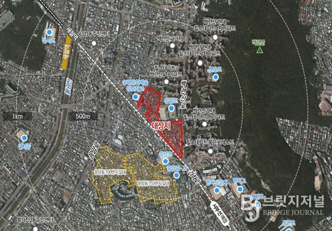 또한 용도지역 상향 '제2종일반주거지역(7층 이하)·제2종일반주거지역→제3종일반주거지역'과 사업성 보정계수 적용으로 사업성을 개선해 사업 실현성을 높였다.