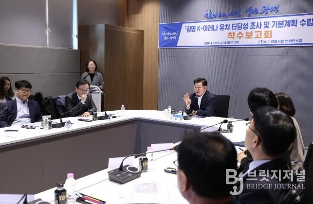 시는 16일 오전 시청 컨퍼런스룸에서 ‘광명 케이(K)-아레나 유치 타당성 조사 및 기본계획 수립 용역’ 착수보고회를 개최하고, 대한민국을 대표하는 글로벌 문화·스포츠 랜드마크 조성을 위한 구체적 계획을 논의했다.