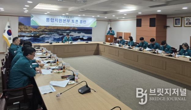 브릿지저널 윤나영 기자 | 울산 동구는 3월 16일 오전 10시 30분 일본 서쪽 해역에서 규모 8.6의 지진이 발생한 것을 가정하여 통합지원본부 토론훈련과 주민 대피 현장훈련을 연계하여 실시했다.
