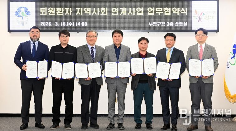 브릿지저널 김경미 기자 | 부평구는 16일 퇴원환자의 안정적인 지역사회 정착을 지원하기 위해구청에서 지역 의료기관과 ‘퇴원환자 지역사회 연계사업’ 업무협약을 체결했다.