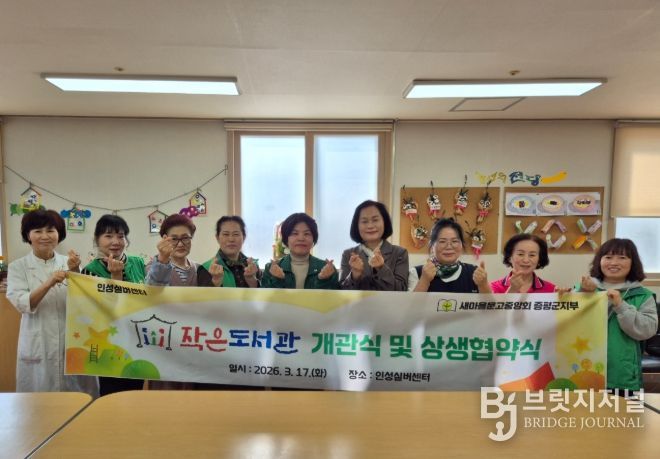 브릿지저널 김경미 기자 | 새마을문고중앙회 증평군지부(회장 강미영)가 17일 인성실버센터에서 ‘새마을문고 작은도서관’개관식과 상생 협약식을 개최했다.