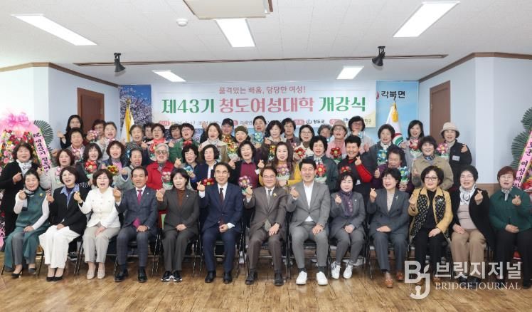 브릿지저널 정보영 기자 | 청도군은 17일 오후 2시 각북면사무소 회의실에서 수강생과 지역단체장, 여성단체장 등 60여 명이 참석한 가운데 제43기 청도여성대학 개강식을 개최했다.