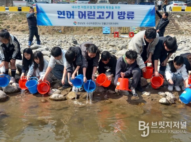 브릿지저널 김경미 기자 | 경상남도 수산자원연구소 민물고기연구센터는 17일 하동군 섬진강에서 내수면 청정 생태계 보전과 연어 자원 회복을 위해 어린 연어 2만 마리를 방류했다고 밝혔다.