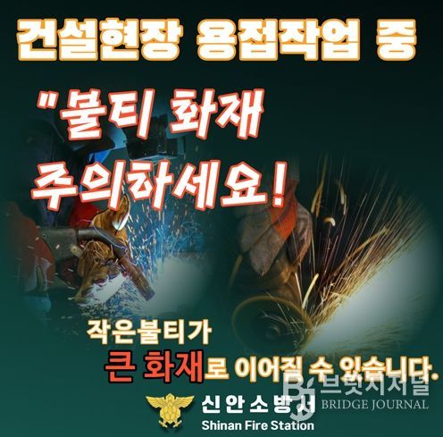 브릿지저널 김경미 기자 | 신안소방서(서장 고상민)는 건설현장에서 실시되는 용접·절단 작업 중 발생하는 불티로 인한 화재 위험이 높다며 각별한 주의를 당부했다.