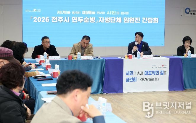 브릿지저널 윤나영 기자 | 우범기 전주시장이 2026년 새해를 맞아 전주시 35개 동 주민들의 삶 속으로 찾아가 전주 대변혁을 위한 비전을 공유하고, 생활 속 불편사항에 귀를 기울이는 ‘2026년 연두순방’ 일정을 모두 마무리했다.