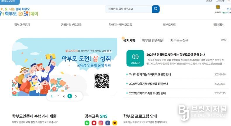 브릿지저널 정보영 기자 | 경북교육청은 학부모의 자녀 교육 역량을 높이고 가정과 학교 간 협력적 교육환경을 조성하기 위해 ‘역량 중심 성장형 학부모 교육’을 연중 운영한다고 18일 밝혔다.