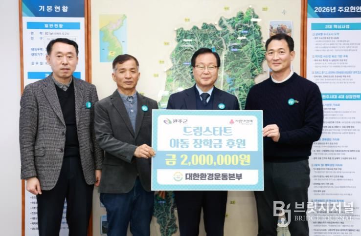 브릿지저널 윤나영 기자 | 대한환경운동본부가 지역 내 취약계층 아동들의 꿈과 희망을 지원하고자 완주군 드림스타트에 장학금 200만 원을 전달하며 훈훈한 온정을 나눴다.