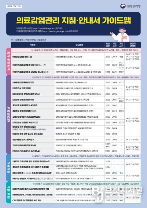 브릿지저널 김경미 기자 | 질병관리청은 의료기관 현장에서 활용할 수 있는 '의료감염관리 지침·안내서 가이드맵'을 제작·배포한다.