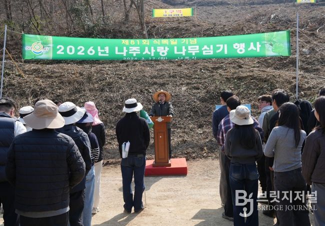 브릿지저널 김경미 기자 | 전남 나주시가 탄소중립 실천과 지속 가능한 산림 조성을 위해 시민과 함께하는 나무심기 행사를 열고 생활권 녹지 확충에 나섰다.