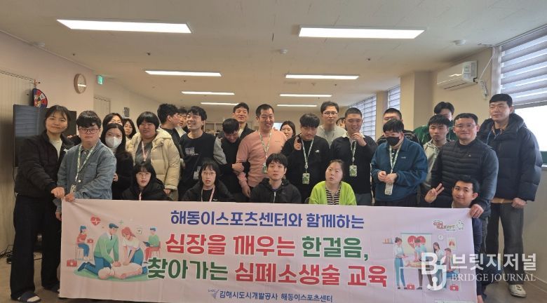 브릿지저널 김경미 기자 | 김해시도시개발공사 해동이국민체육센터는 지난 16일 관내 발달장애인 주간보호센터인 ‘와락 사회적협동조합’을 방문해 ‘기초 응급처치 및 심폐소생술(CPR) 교육’을 실시했다.