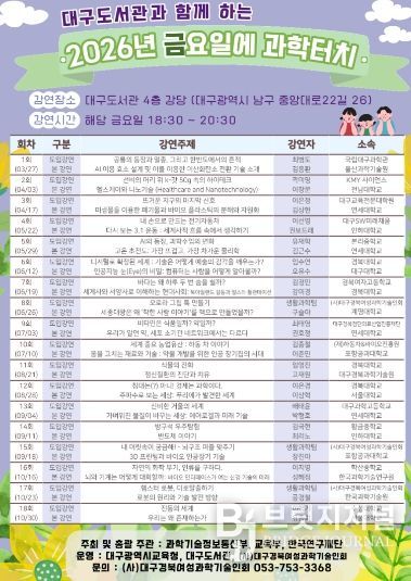 브릿지저널 김진석 기자 | 대구도서관은 시민들에게 최신 과학기술과 연구 성과를 쉽고 흥미롭게 전달하기 위해 ‘2026년 금요일에 과학터치’ 프로그램을 본격 운영한다.