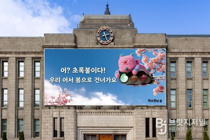 브릿지저널 김경미 기자 | 3월 19일 서울시가 봄을 맞이하여 서울도서관 외벽 대형 글판인 서울꿈새김판을 새롭게 단장하여 공개했다.