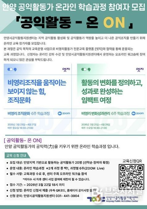 브릿지저널 김경미 기자 | 안양시공익활동지원센터가 지역 공익활동가들의 철학적 토대를 다지는 교육을 성공적으로 마친 데 이어, 실천적 전문성을 높이기 위한 온라인 교육 과정을 본격 가동하며 활동가 지원에 박차를 가하고 있다.