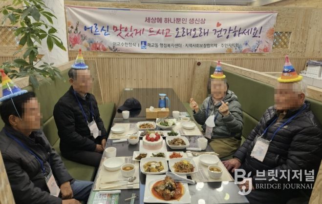 브릿지저널 김경미 기자 | 수원시 팔달구 매교동은 지난 18일, ‘세상에 하나뿐인 생신상(생신 도래 어르신 생신상 차림)’ 사업으로 2026년 3월 생일이 도래한 관내 저소득층 어르신들께 생신상 한상차림을 대접했다.