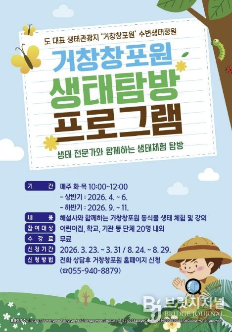 브릿지저널 김경미 기자 | 거창군은 4월부터 군민과 방문객 등을 대상으로 거창창포원의 자연자원을 활용한 현장 중심 생태체험프로그램을 운영한다.