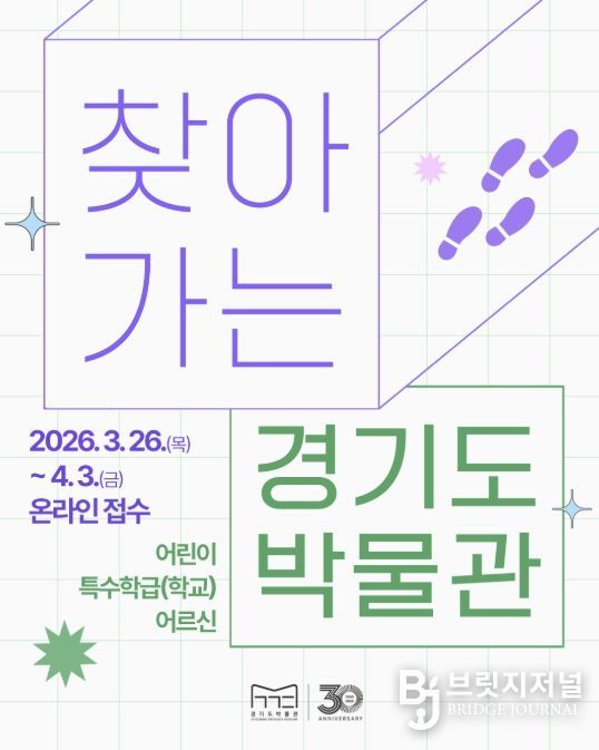 브릿지저널 김경미 기자 | 경기문화재단 경기도박물관은 오는 4월부터 11월까지 문화소외계층을 직접 찾아가는 체험 교육 프로그램인 ‘2026 찾아가는 경기도박물관’을 운영한다. 참여를 희망하는 기관은 오는 3월 26일부터 4월 5일까지 경기도박물관 누리집을 통해 신청할 수 있다.