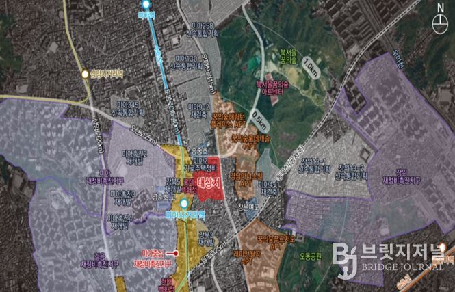 브릿지저널 김경미 기자 | 지하철 4호선 미아사거리역 롯데백화점 뒤 300m 역세권에 최고 높이 45층, 1,600세대 대규모 아파트 단지가 들어선다.