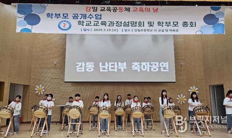 브릿지저널 김경미 기자 | 하남 감일초등학교는 3월 18일 2026학년도 ‘감일 교육공동체 교육의 날’을 맞아 학부모총회와 학교교육과정 설명회를 개최하고, 학생 자율동아리 ‘감동 난타부’의 축하 공연을 선보였다.