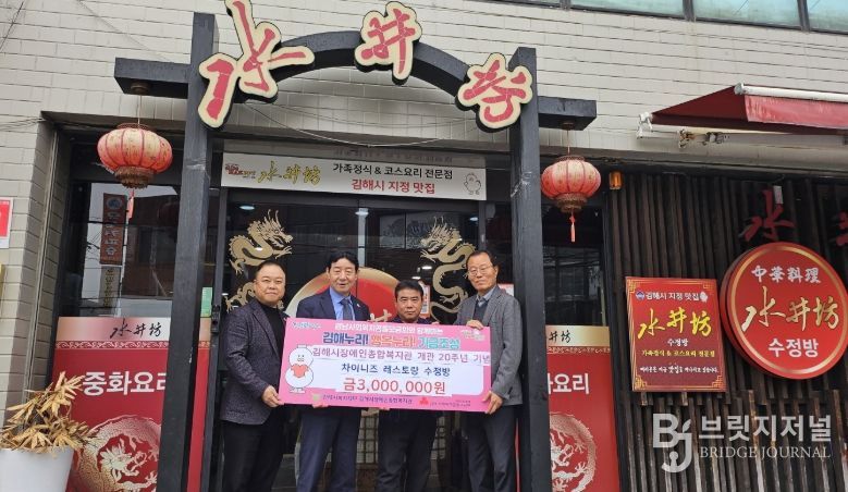 브릿지저널 김경미 기자 | (재)김해시복지재단 김해시장애인종합복지관은 개관 20주년을 맞아 차이니즈레스토랑 수정방(대표 서종수)으로부터 300만원 상당의 중화요리 특식을 후원 받았다고 밝혔다.